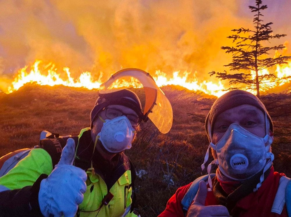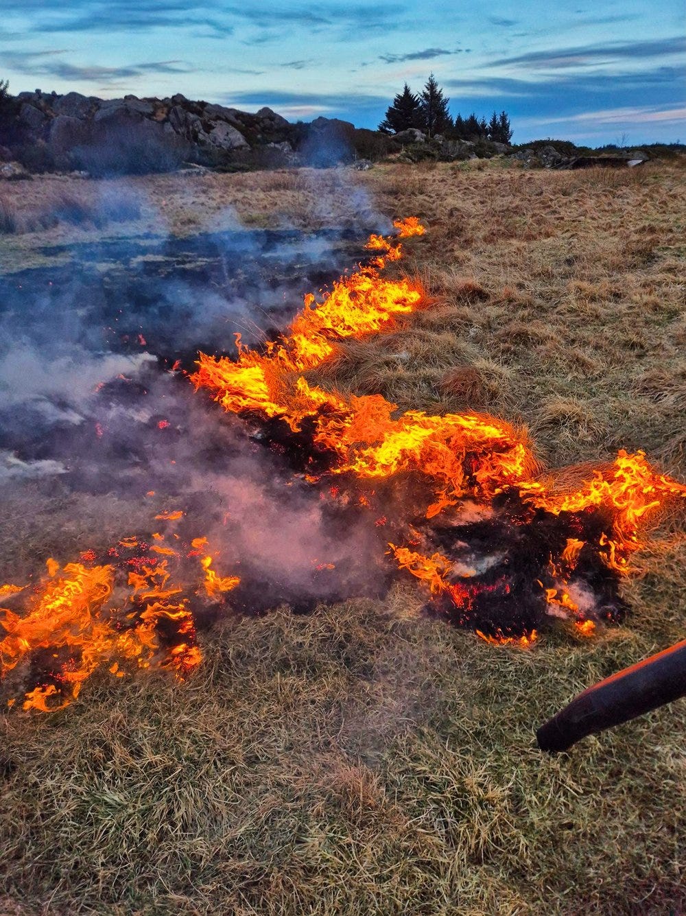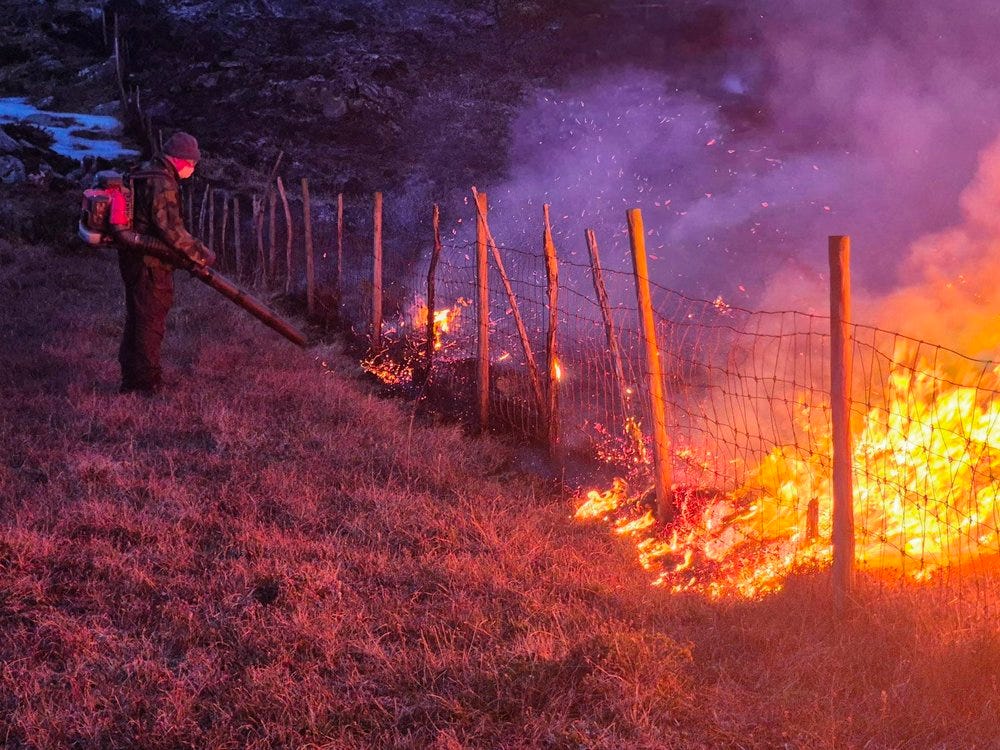 På turene våre i skog og hei rundt på Sørlandet med King Kenny så ser jeg tydelig hvordan lyng, gress og busker kveler de unge trærne – alt gror tett sammen uten forvalting, og uten den naturlige fornyelsen brann gir. Tenk om vi fikk flere kontrollert brenninger her nede: Færre skogsflått på stiene (bra for både King Kenny og meg), mer åpent terreng og et rikere dyreliv å observere sammen. Jeg forstår ikke hvorfor det ikke er mer av dette her nede. Da jeg var ung, drev mange med dette så snart snøen forsvant. Dette er ikke bare viktig, men også en "tradisjon" jeg synes bør vekkes til live igjen av flere enn de få som brenner i dag.