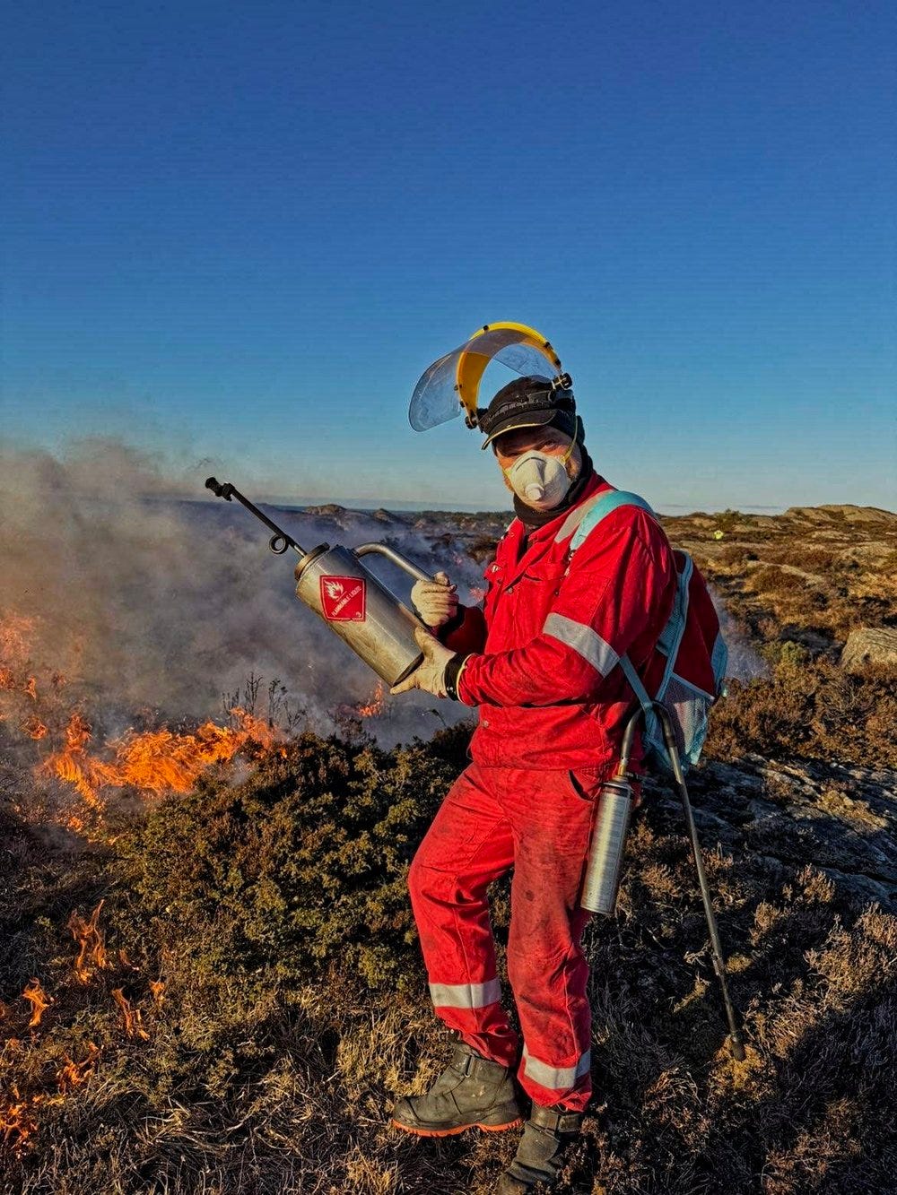 Odd-Bjørn på jobb som lyng brenner.
