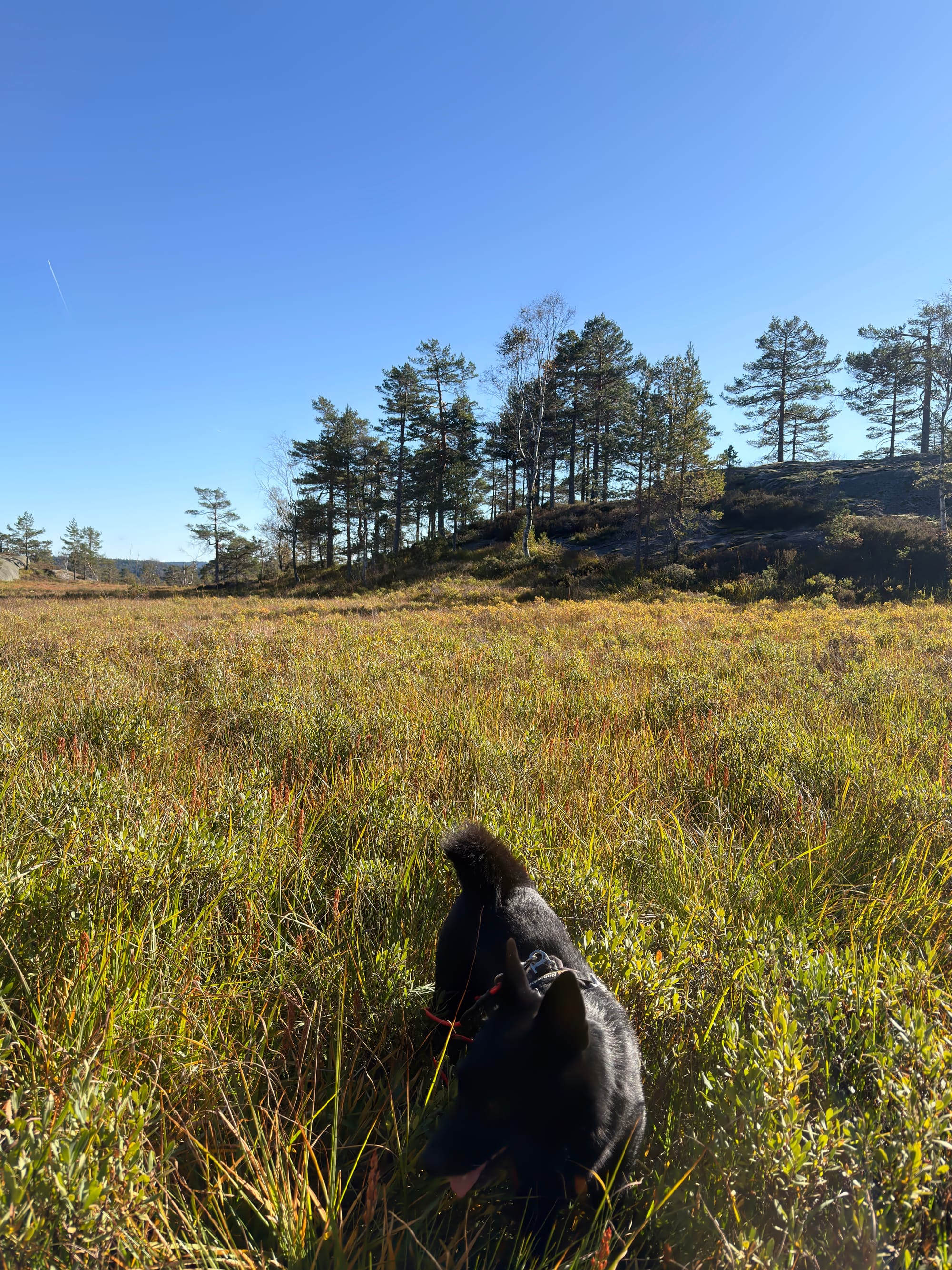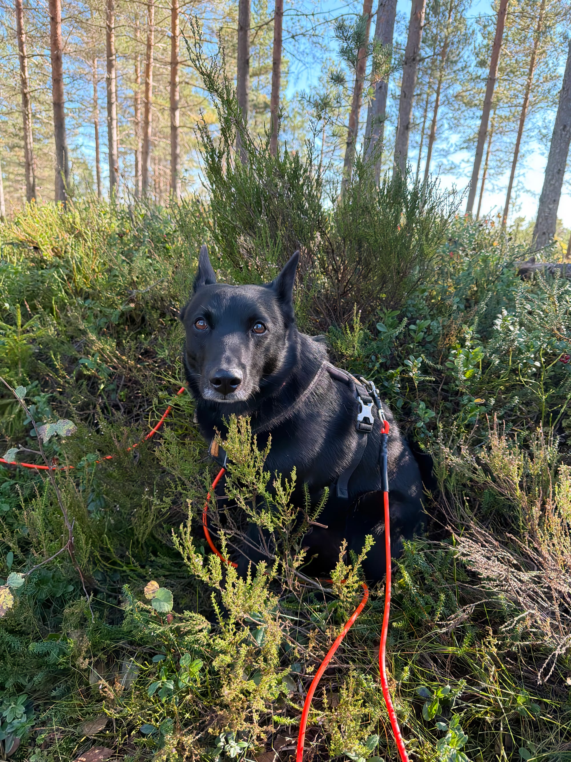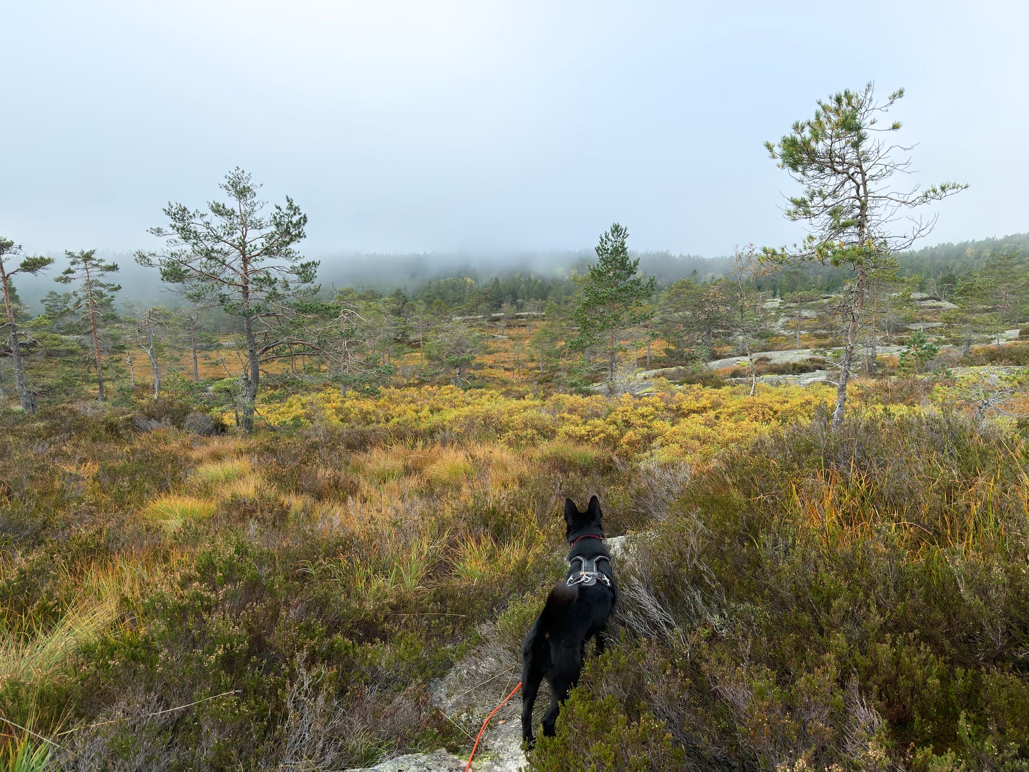 Vi så hverken elg eller hund, men de var lette å følge på lyden, og på nærmeste så var de under 100 meter fra oss et par tre ganger i løpet av formiddagen. Det er litt haug og hei der vi har camp, så det er ikke veldig mange meter med fri sikt. Hedde jeg gått bort på nærmeste kolle å satt meg så hadde jeg fri sikt til store områder, men jeg ville jo ikke det i denne settingen. Jeg satte meg godt tilrette i stolen med den ene morra kaffe koppen etter den andre å lyttet på podcast, for er det noe elgen ikke liker så er det menneskestemmer. Igjen, jeg var ikke redd for annet enn at Kenny skulle bli skadet, men det var noe jeg kjente skikkelig på.