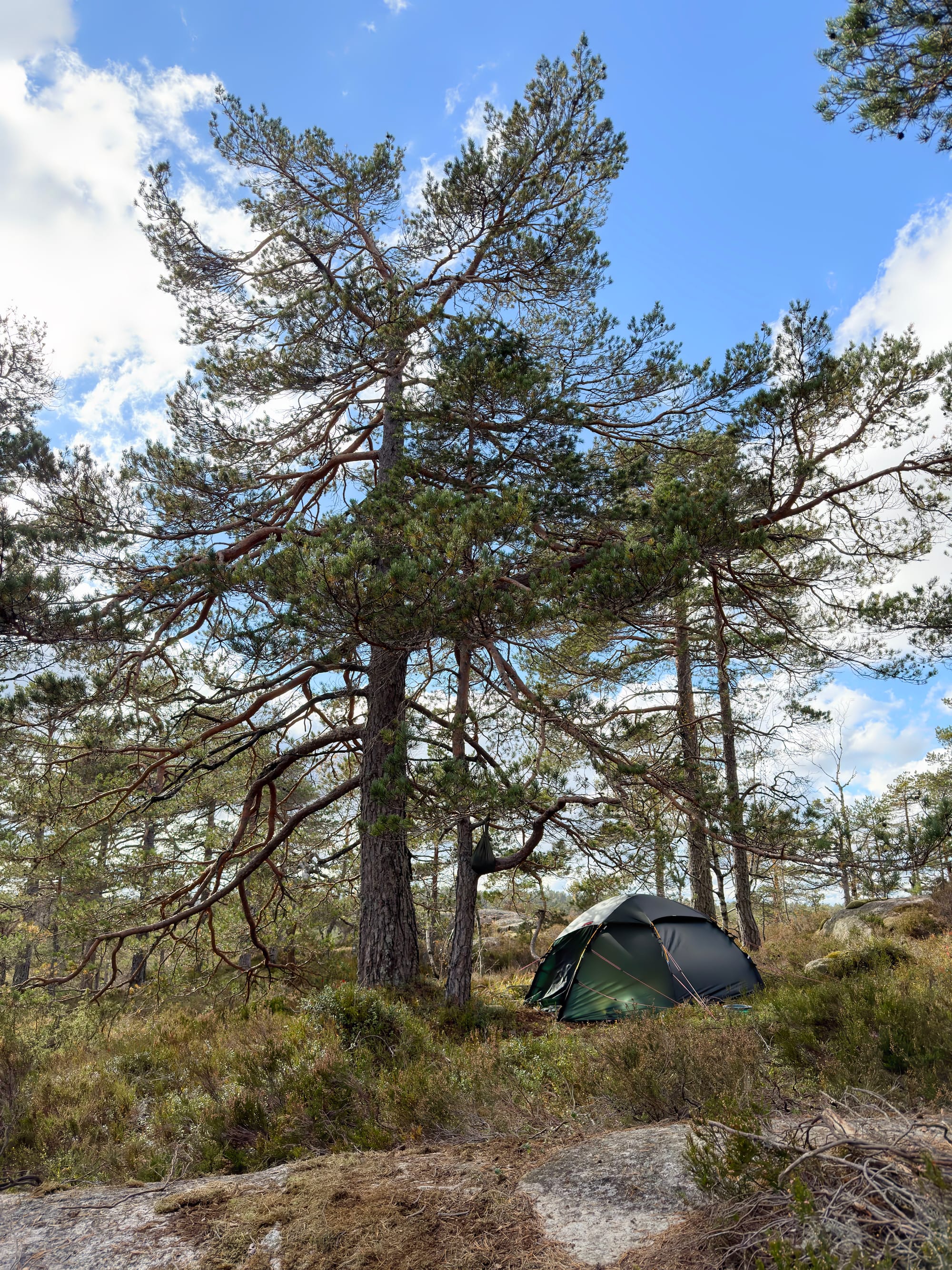 Jeg tror ikke jeg har vært ute i telt siden mai, det er ganske unormalt for min del at det går så lang tid mellom hver gang. Årsakene er flere, blant annet så gikk jo hele den planlagte ferien også ut vinduet i år. men men, det var godt å komme seg ut igjen, selv om siste tids sykdom fremdeles sitter i, sliter med pust, lunger og slimhoste, det har jeg holdt på med i fire uker nå.